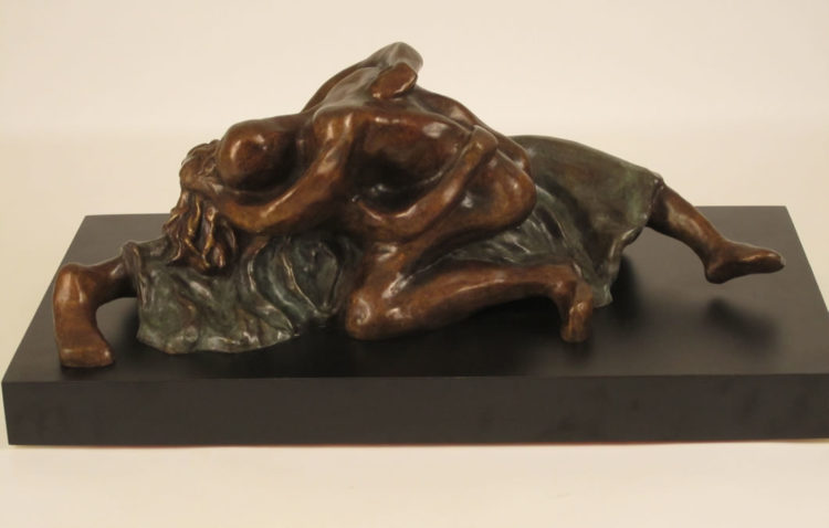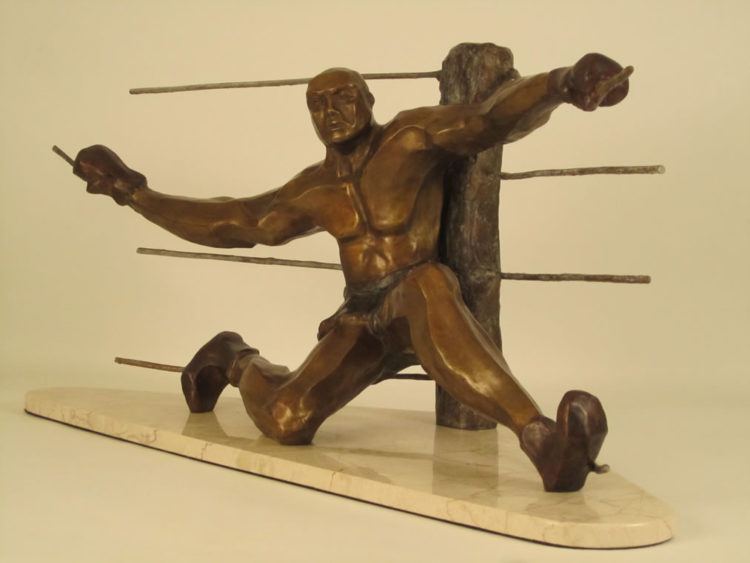 I initially wired a set of acrobatic figures in a circle that to some extent was reminiscent of- “The Dance” by Henri Matisse. Gradually, six figures were connected to shoulders, arms, hands, knees and feet. As I sculpted the figures, they became connected in so many individual positions of strain and support. Every figure has at least four connections to other figures. Even their feet are pressed together, like roots of a tree to provide more strength and stability.. Each figure is critical to the support of all the others. It is the complete, totally cooperative focus of strained effort; by a group of people aimed towards a single major goal. There is no single person who becomes the star or even the symbol of the groups achievement. All of them are better off, and safer, from their mutual enhancing strength.